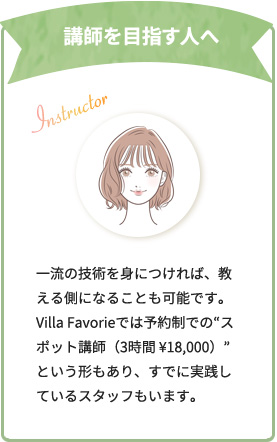 独立経験や長年のキャリアを持つ熟練ネイリスト・アイリストから技術を教わることができる。