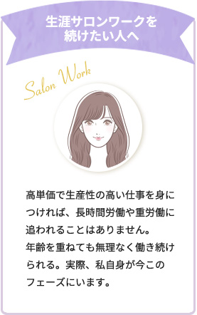 無理なく、誇りを持って働けるサロンワークが叶います。